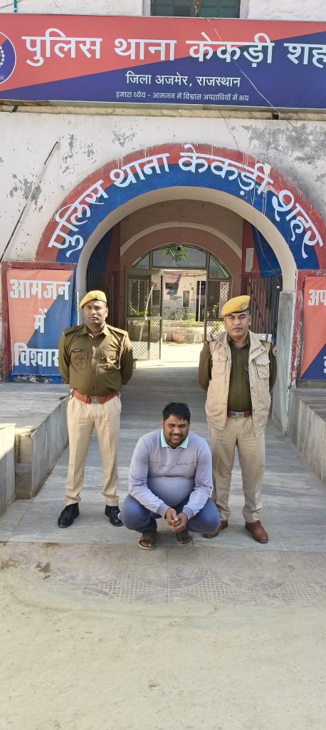 केकड़ी। पुलिस अधीक्षक अजमेर व अतिरिक्त पुलिस अधीक्षक केकड़ी के निर्देशन एवं वृत्ताधिकारी केकड़ी हर्षित शर्मा (आरपीएस) के मार्गदर्शन में चलाए जा रहे अभियान के तहत पुलिस थाना केकड़ी शहर द्वारा प्रभावी कार्रवाई करते हुए नाबालिग बच्चों से रुपए लेकर कैफे में अवैध रूप से जगह उपलब्ध कराने वाले आरोपी को गिरफ्तार किया गया है।