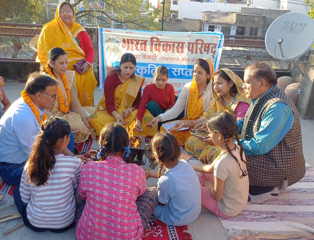 केकड़ी।भारत विकास परिषद शाखा केकड़ी की मातृशक्ति महिला मण्डल द्वारा बाबा रामदेव सरस्वती संस्कार केंद्र भेरूगढ़ में संस्कार सप्ताह का आयोजन उत्साहपूर्वक संपन्न हुआ। कार्यक्रम में लगभग 40 बच्चों ने सक्रिय भागीदारी निभाई। संस्कार, नैतिक मूल्यों और स्वच्छता के प्रति जागरूकता बढ़ाने के उद्देश्य से आयोजित इस विशेष सप्ताह की शुरुआत विधिवत हवन से की गई, जिसमें परिषद सदस्यों सहित सभी बच्चों ने सहभागिता की।