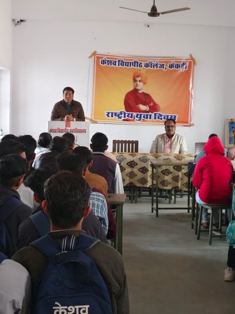 कस्बे के अजमेर रोड स्थित बिजासन माता मंदिर के सामने स्थित केशव विद्यापीठ कॉलेज में सोमवार को महान चिंतक, युगप्रवर्तक और राष्ट्रनिर्माता स्वामी विवेकानंद की जयंती के अवसर पर युवा दिवस श्रद्धा, गरिमा और उत्साहपूर्ण वातावरण में मनाया गया। कार्यक्रम में विद्यार्थियों को स्वामी विवेकानंद के विचारों, आदर्शों और राष्ट्र के प्रति उनके योगदान से परिचित कराया गया।