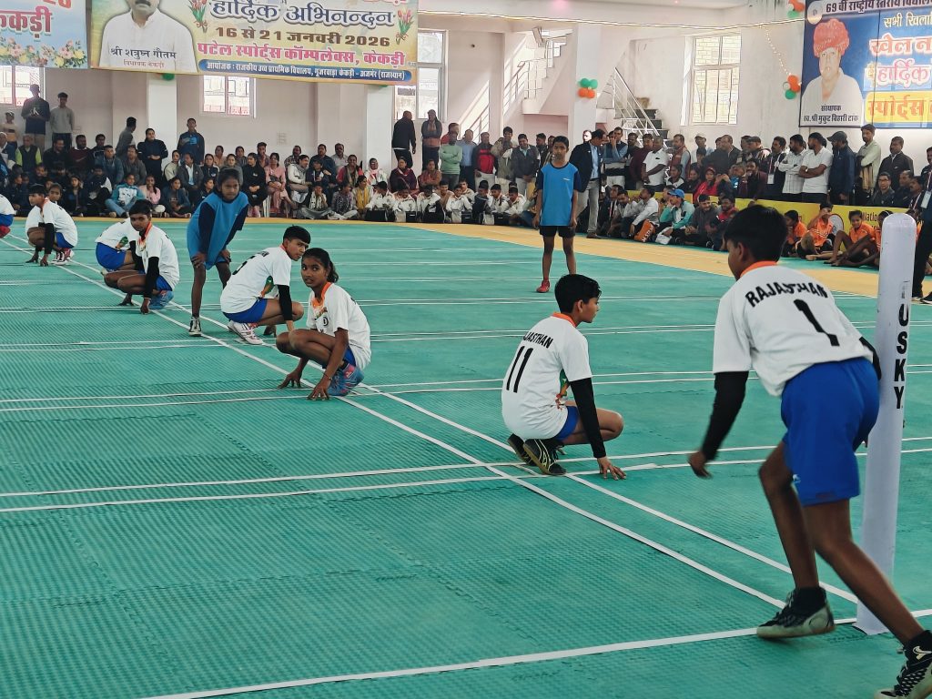 केकड़ी । कस्बे के पटेल स्पोर्ट्स कॉम्प्लेक्स में स्कूल गेम्स फेडरेशन ऑफ इंडिया के तत्वावधान में चल रही 69 वीं 14 वर्ष राष्ट्रीय खो-खो प्रतियोगिता में रोमांचक मुकाबले पांचवे दिन भी जारी रहे। मंगलवार को हुए सेमीफाइनल मुकाबले में प्रिंस की अगुवाई में राजस्थान की छात्र टीम ने शानदार प्रदर्शन करते हुए महाराष्ट्र को हराकर फाइनल में जगह बना ली है।