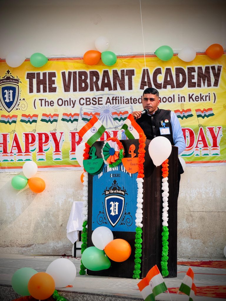 केकड़ी । द वायब्रेंट एकेडमी विद्यालय में 77वां गणतंत्र दिवस बड़े उत्साह और गरिमामय वातावरण में मनाया गया। कार्यक्रम की शुरुआत ध्वजारोहण से हुई, जिसके पश्चात विद्यार्थियों द्वारा आकर्षक परेड प्रस्तुत की गई। परेड में छात्रों के अनुशासन और देशभक्ति की भावना ने सभी का मन मोह लिया।