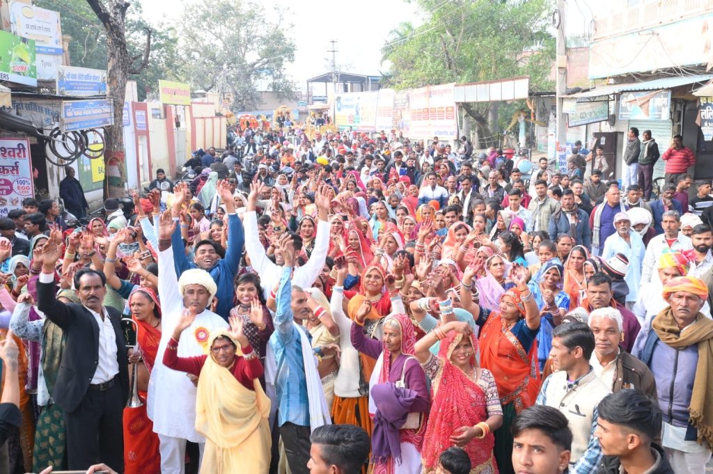 इससे पूर्व भेरू गेट स्थित बाबा रामदेव मंदिर से प्रातः 9 बजे बैंड-बाजों के साथ वर-वधुओं की बिंदौली निकाली गई। शोभायात्रा में सुसज्जित वाहन पर संत रविदास की प्रतिमा स्थापित की गई, जो शहर के विभिन्न मार्गों से होती हुई कार्यक्रम स्थल पर पहुंची। वहां वधू-वर द्वारा तोरण की रस्म अदा की गई, जिसके पश्चात वैदिक मंत्रोच्चार के बीच पारिग्रहण संस्कार संपन्न हुआ। इसके बाद आशीर्वाद समारोह आयोजित किया गया।