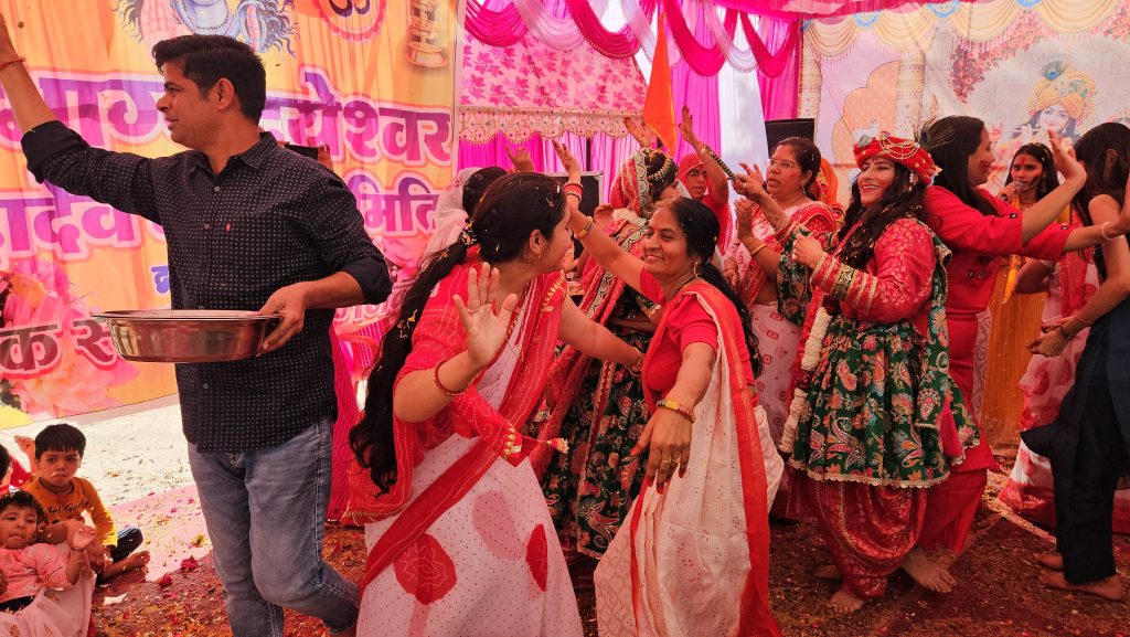 आयोजन में महिला मंडल की सदस्याएं विशेष रूप से एकरूपता के साथ निर्धारित साड़ियों में सुसज्जित नजर आईं, जिससे कार्यक्रम की भव्यता और भी बढ़ गई। महिलाओं ने उत्साहपूर्वक भाग लेते हुए फाग गीतों पर नृत्य किया और पूरे वातावरण को उत्सवमय बना दिया।