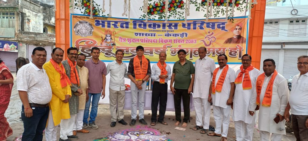 केकड़ी, 19 मार्च। भारतीय संस्कृति एवं परंपराओं के प्रति गहरी आस्था का परिचय देते हुए भारत विकास परिषद शाखा केकड़ी द्वारा भारतीय नववर्ष (विक्रम संवत 2083) का स्वागत हर्षोल्लास एवं उत्साह के साथ किया गया। इस अवसर पर परिषद के सदस्यों ने शहरवासियों का तिलक कर मिश्री, काली मिर्च एवं नीम की कोपलों का पारंपरिक प्रसाद वितरित कर नववर्ष की शुभकामनाएं दीं।