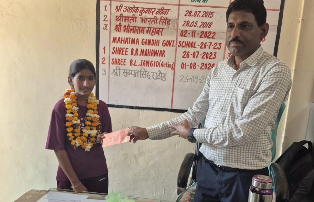 प्रधानाचार्य संपत सिंह राठौड़ ने अव्वल रही पिंकी बोहरा को सम्मानित कर उज्ज्वल भविष्य की शुभकामनाएं दीं। इस अवसर पर उपप्राचार्य धर्मेन्द्र तिवारी, रुकमनी चौधरी, नंदकिशोर शर्मा, सूरजमल बैरवा, रणवीर सिंह, मुकेश ताकर, सुमेर सिंह, मोनिका सेन, निकिता तंवर, देवेन्द्र कुमार, अमर सिंह, सीताराम चौधरी, रमेश कुमार सहित समस्त स्टाफ उपस्थित रहा।