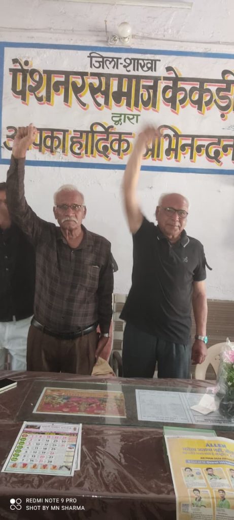 राजस्थान पेंशनर्स समाज जिला शाखा केकड़ी के आह्वान पर बुधवार सुबह 11:15 बजे करीब 200 पेंशनर्स समाज भवन में एकत्रित हुए। इसके बाद जिला अध्यक्ष कैलाश चंद जैन, संरक्षक रामकरण चौधरी, भूरालाल वर्मा, रामलाल वर्मा, रामेश्वर उपाध्याय, कृष्ण गोपाल शर्मा, भानु कुमार बघेरा, पोलूराम कुम्हार, कृष्ण गोपाल वैष्णव के सानिध्य में रैली निकालकर उपखंड अधिकारी को ज्ञापन दिया गया।